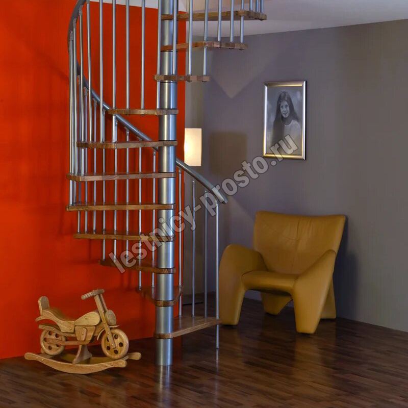 Винтовая лестница SPIRAL EFFECT d140 см, серебро, лакированный бук