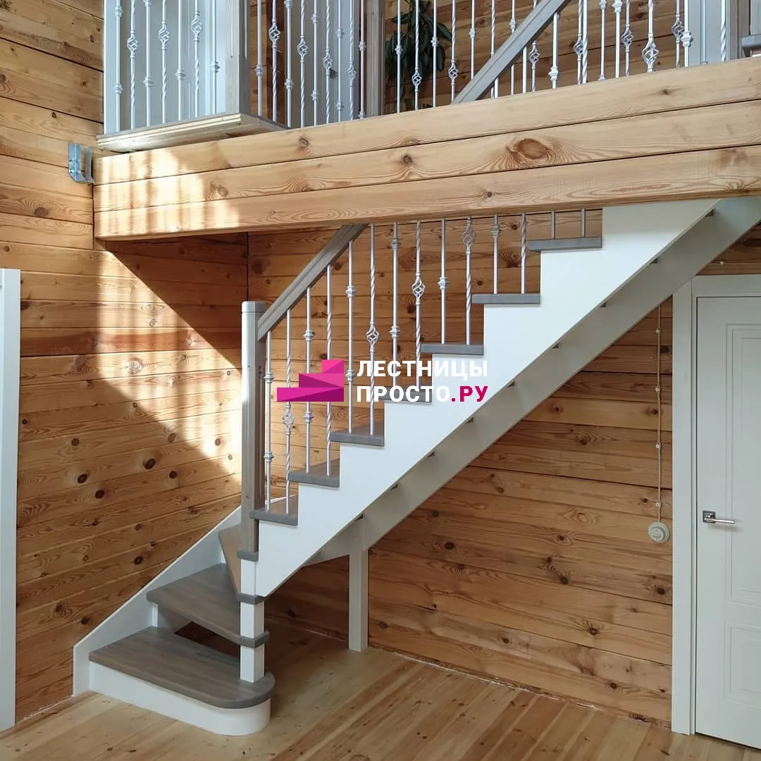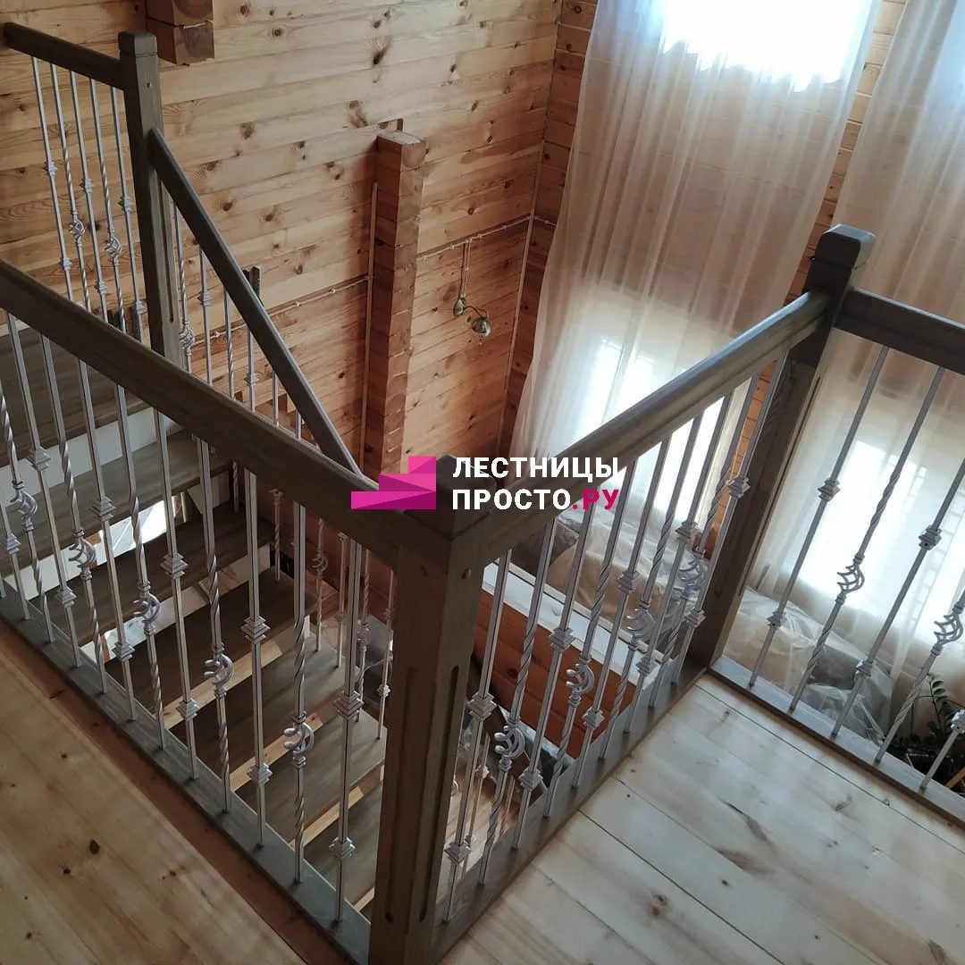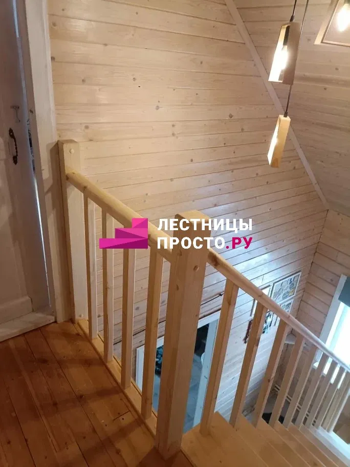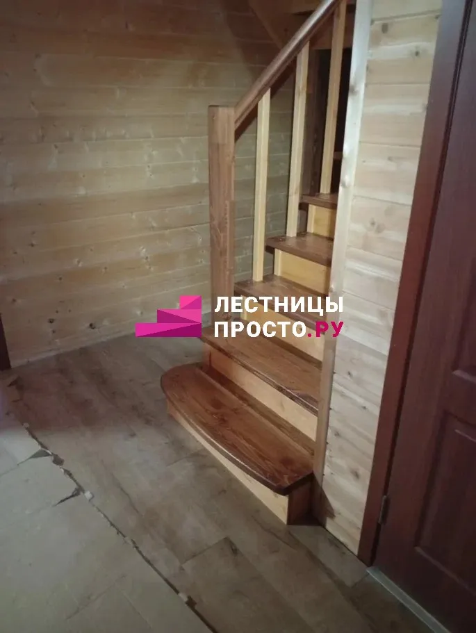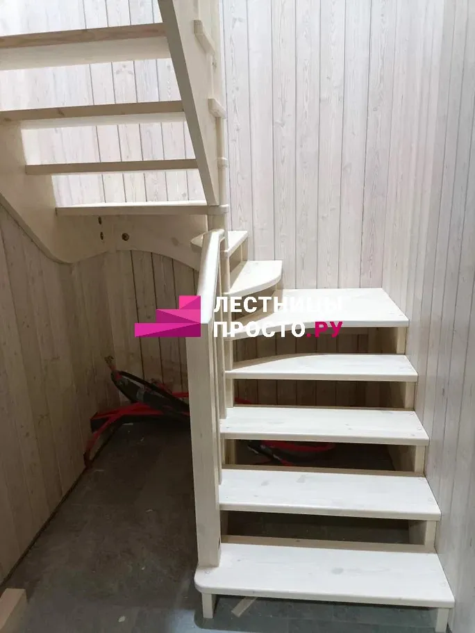 Г-образная лестница из сосны для частного дома ЛС-07/4